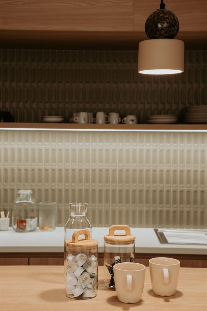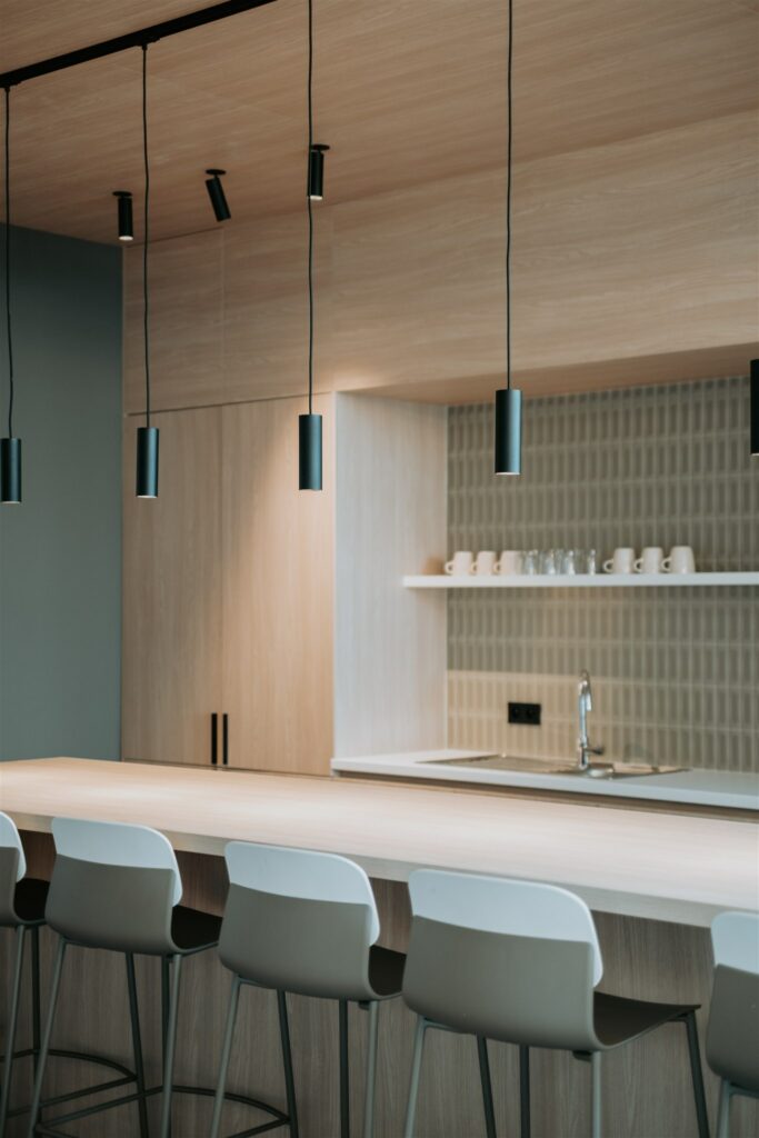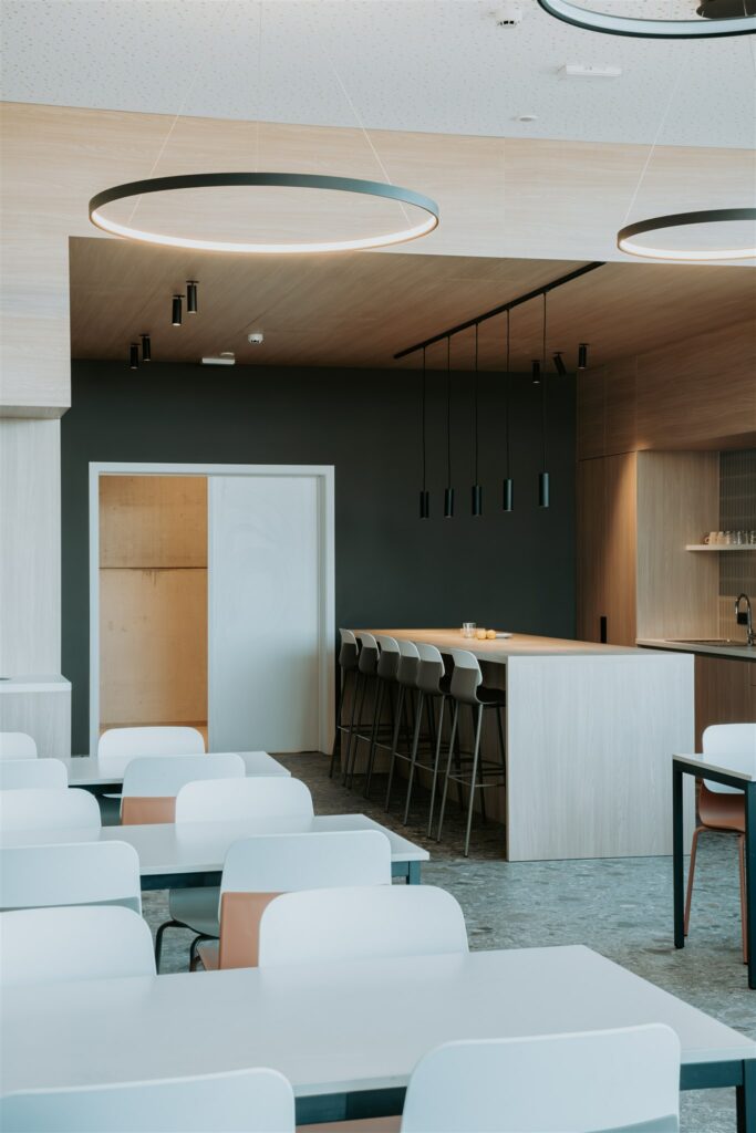 Ce projet a été conçu pour offrir un cadre de travail à la fois agréable et convivial, autour de teintes chaleureuses et d’éléments naturels, inspirés de leur savoir-faire fromager et en écho à leur engagement pour la réduction de l’impact environnemental.